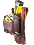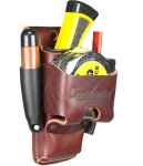 Keep essential tools within easy reach with this 4-in-1 belt-worn holder, designed to carry more without adding bulk. Built from sturdy American leather, it features dedicated slots for a tape measure, pencil, lumber crayon or screwdriver—plus a FREE Oxy Tool Shield to safely carry sharp tools like chisels or utility knives.
